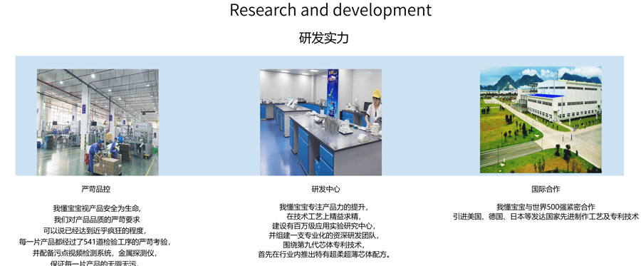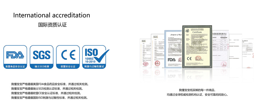 我懂宝宝以“放心、安全、信赖”作为品牌价值观,秉承“简单纯粹”的品牌理念,与世界五百强强强联合,采用独有产品配方,坚持安全纯净无添加,选用进口优质原材料精工细作,相继获得欧美权威CE、SGS、FDA认证,并成为首家医护级认证的素柔纸尿裤。我懂宝宝不仅具备良好的自主研发能力,同时与多家拥有先进生产设备的企业建立战略合作关系,打造了一个强大而稳定的纸尿裤产品柔性供应链基地,引领中国纸尿裤开启“2.0轻薄”时代。