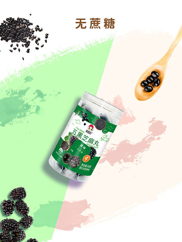 果蔬妃【五黑芝麻丸】融合黑芝麻、黑豆、黑米、黑枸杞和桑葚的营养成分,使用木糖醇替代蔗糖,古法工艺,醇香清甜;含有钙铁锌和维生素E,适合孕妈宝妈和3岁以上宝宝食用!