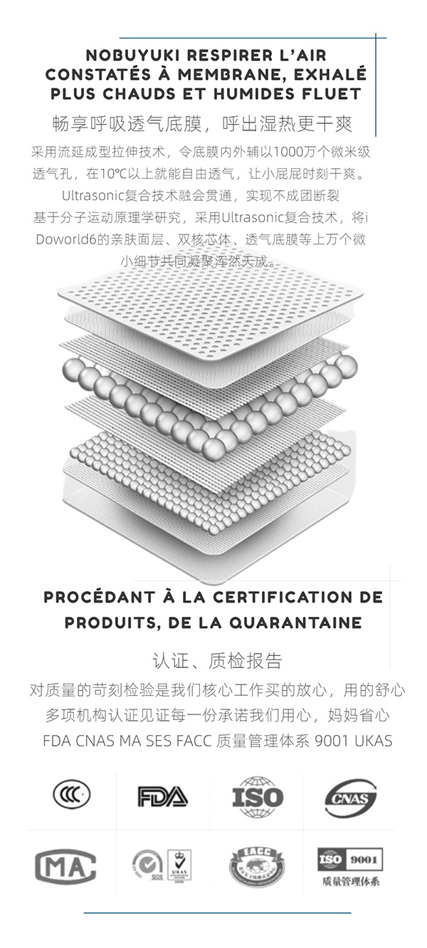 对质量的苛刻检验是我们核心工作。买的放心,用的舒心。(FDA CNAS MA SES FACC 质量管理体系 9001 UKAS)多项机构认证见证每一份承诺我们用心,妈妈省心。