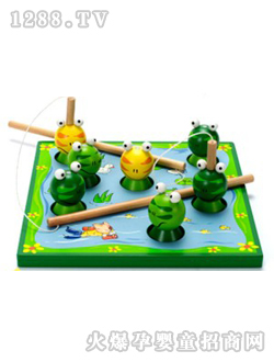 游戏说明:有趣的钓青蛙,新推出的产品.墨绿的小青蛙带有磁性,不仅锻炼宝宝的手指灵活度,还培养宝宝的思维敏捷度。