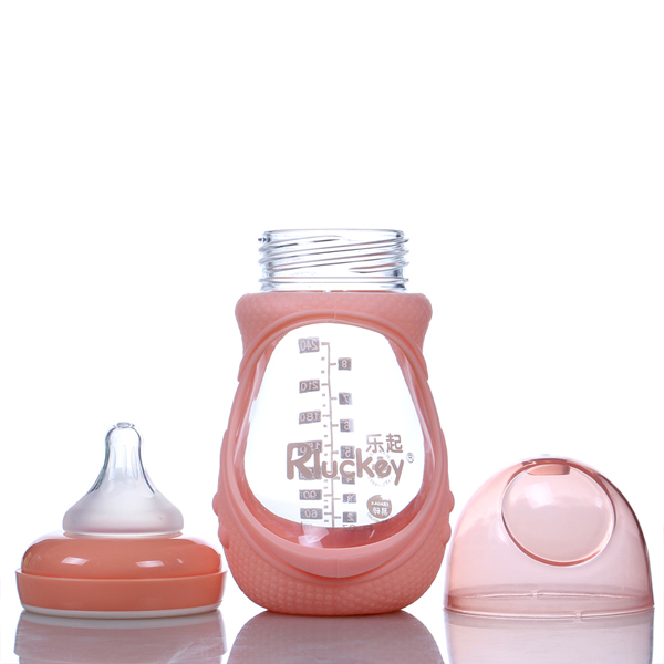 • 乐起180ml防摔玻璃奶瓶粉色不带柄