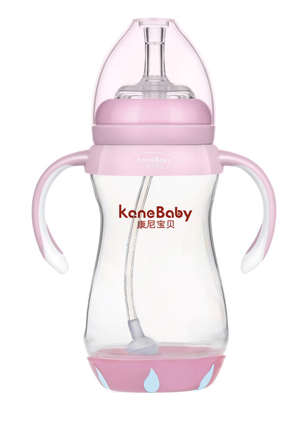 • 康尼宝贝弧形宽口有柄自动防爆玻璃奶瓶180ml 红色