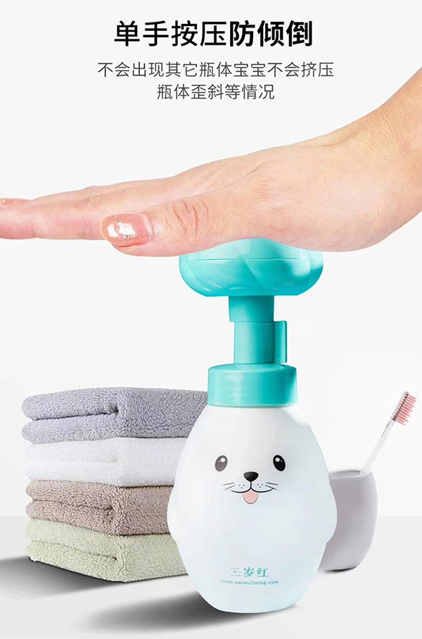 【三岁红花朵洗手慕斯】是2020年销量突飞猛进和颜值品质有担当的一款新品,婴幼儿家庭都可放心使用,更好的给客户提高洗手乐趣给孩子一个好习惯,简单好用的按压式出花朵泡沫,轻轻按压花朵泡沫奶香味,乐趣洗手慕斯,新款爆品赢得全国各地母婴店客户喜爱,洗护品牌质量保证价格优惠!三岁红花朵洗手慕斯、配方温和、呵护宝宝双手、泡沫丰富细腻、充分清洁手部肌肤、萃取天然护肤配方、使肌肤润滑有光泽。