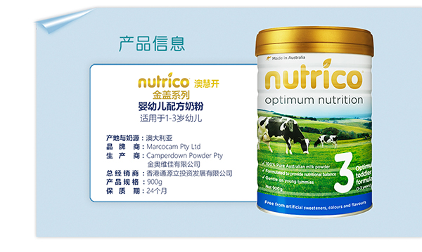Nutrico为婴儿至幼儿的优质粉奶系列,由澳大利亚的牛奶于当地制造。全都都经由我们的家族企业制造,它为一所澳大利亚里最受推崇的乳品生产商之一。我们的宗旨是要带给您最安全、最优质的澳大利亚婴儿奶粉并将最好的营养献给您的宝宝。