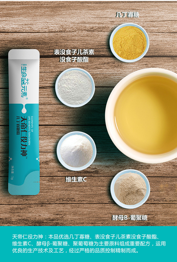生命益元素天帝仁役力神几丁寡糖粉,是天帝仁医药集团旗下推出的一款营养品,优选几丁寡糖、表没食子儿茶素没食子酸酯、维生素C、酵母β-葡聚糖、聚葡萄糖为主要原料组成重要配方,运用优良的生产技术及工艺,经过严格的品质控制精制而成。