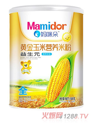 谷物中含有较高的营养,玉米是一种高营养的谷物,含有天然成分的钙,胡萝卜素也比其他植物的含量要高,叶黄素能帮助宝宝视力的发育,妈咪朵营养玉米米粉采用优质谷物,玉米为主要原料,营养科学搭配,先进的生产加工工艺,帮助宝宝真正做到营养补充。
