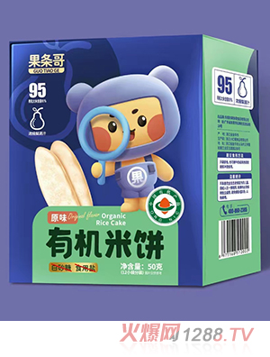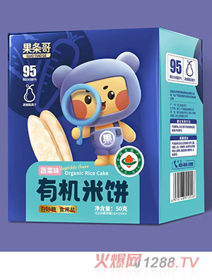 果条哥有机米饼,有水果味、蔬菜味、原味共三种口味,精选原料,有机大米含量达95%,添加浓缩梨清汁,不添加白砂糖、食用盐,味道清甜,蓬松酥脆,入口易溶,健康美味,好吃易消化。