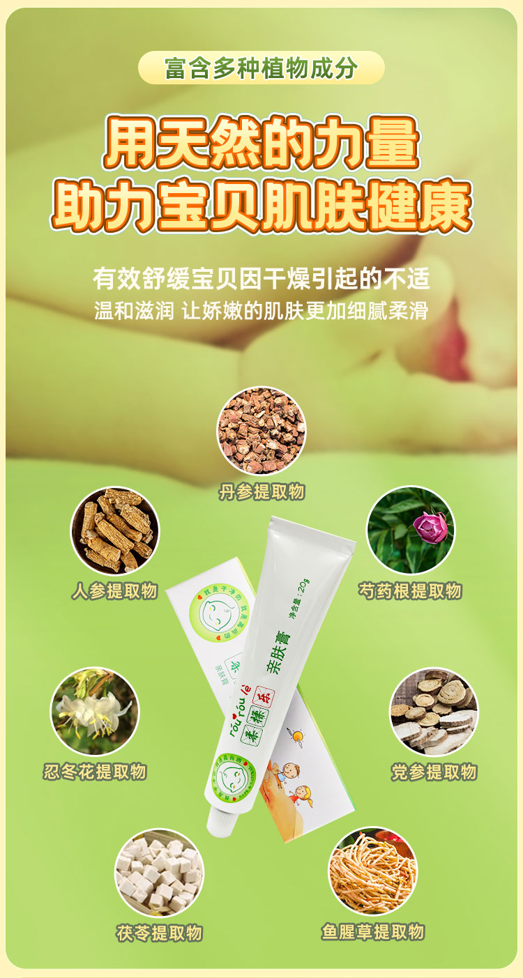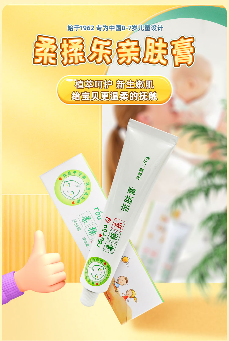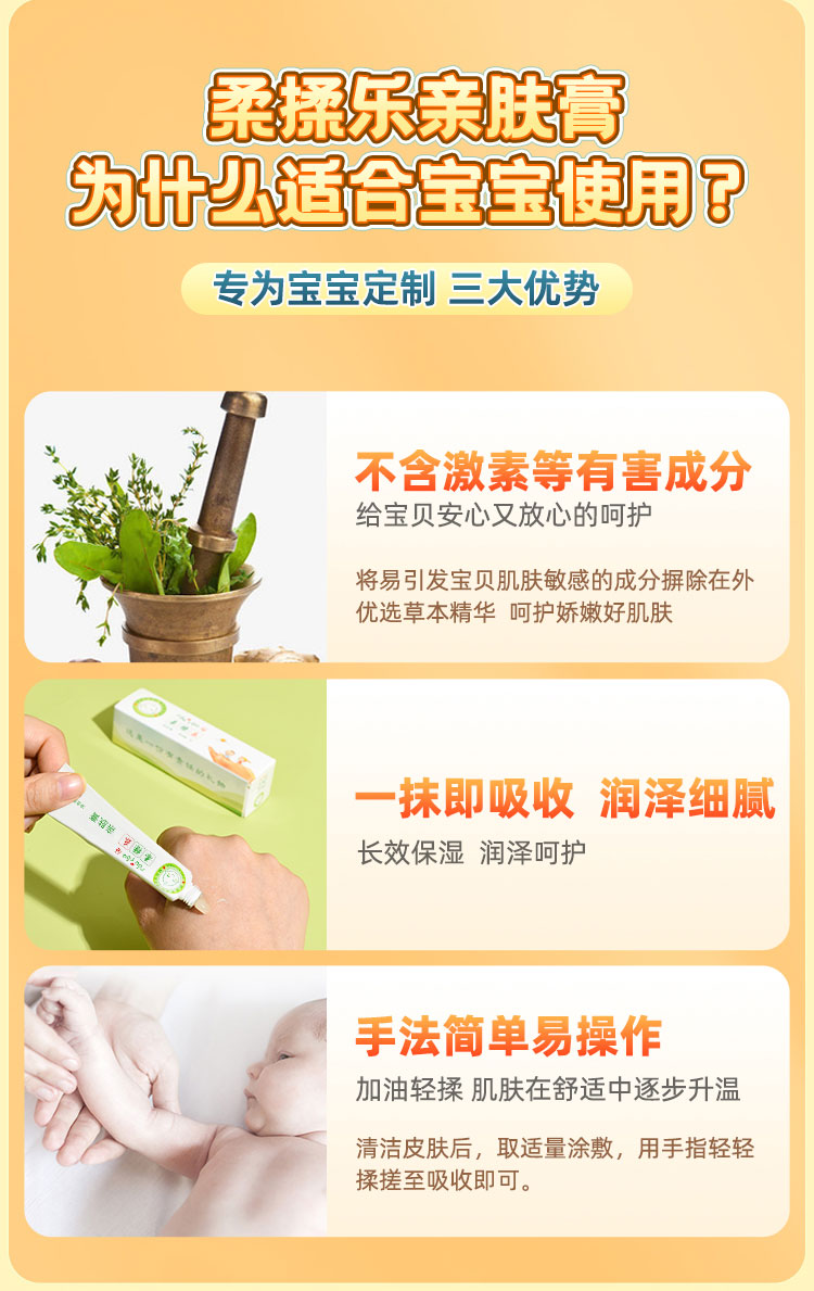 柔揉乐亲肤膏,植萃呵护,新生嫩肌,给宝贝更温柔的抚触。