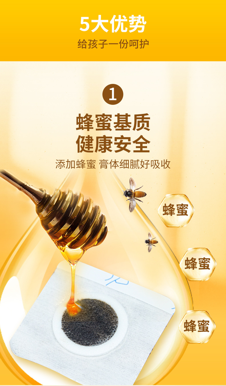 厂家批发小儿咽扁贴蜂蜜穴位保健贴腹泻宝宝贴健脾咳喘消食咳嗽贴