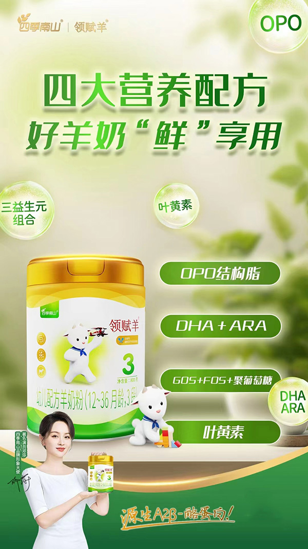 领赋羊youe配方羊奶粉添加OPO结构脂,GOS+FOS+聚葡萄糖 三大益生元组合 ,DHA+ARA 科学配比 ,叶黄素协同助力。纯羊乳清蛋白配方,天然A2蛋白,源生营养。源自荷兰黄金奶源带,甄选优质萨能奶山羊,一码到底,全程溯源 。
