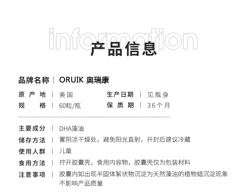 您所在位置:首页>深圳市奥瑞康生物科技有限公司>奥瑞康DHA藻油软胶囊