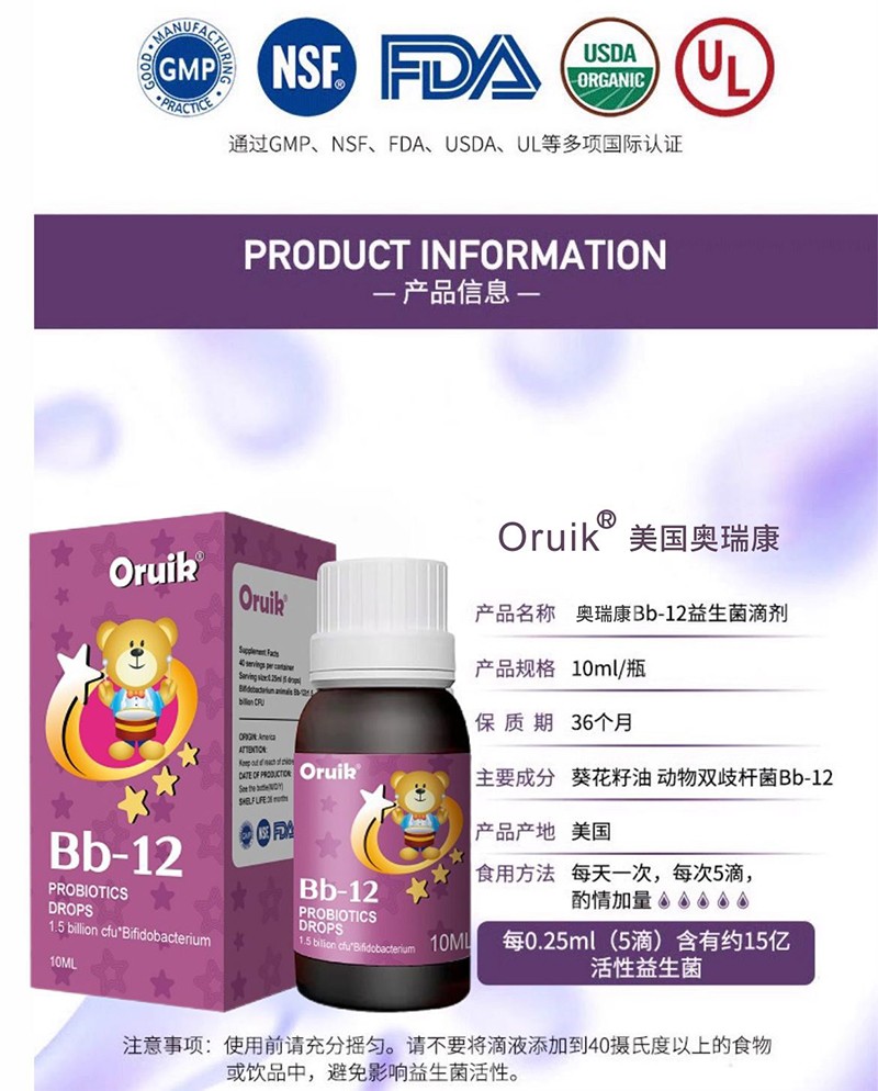 /科汉森原厂益生菌,每5滴不少于15亿CFU益生菌