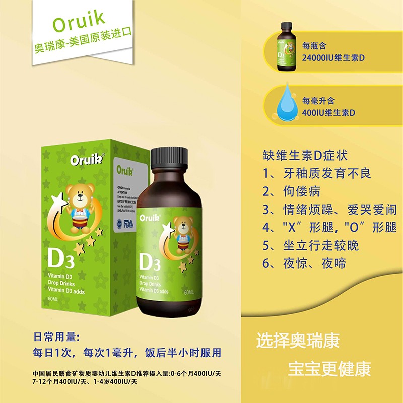 您所在位置:首页>深圳市奥瑞康生物科技有限公司>奥瑞康维生素D3滴剂