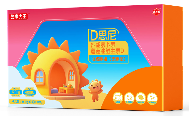 您所在位置:首页>广东营养星生物科技有限公司>潘多星故事大王D思尼β-胡萝卜素蘑菇油维生素D凝胶糖果(无糖型)