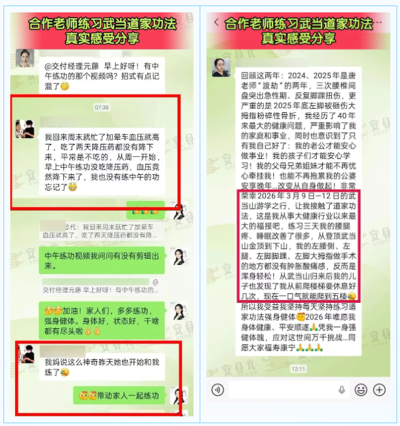 暂别忙碌的工作节奏,置身仙气飘渺的武当仙山,清晨,在武当大师的带领下修习道家正统养生功,于吐纳间唤醒身体本源活力;夜晚,静心聆听道家文化讲座,感悟天人合一的养生智慧。这种沉浸式的体验,让大家的心灵得到洗礼与沉淀,从而以更平和的心态、更饱满的状态迎接未来的事业与生活。