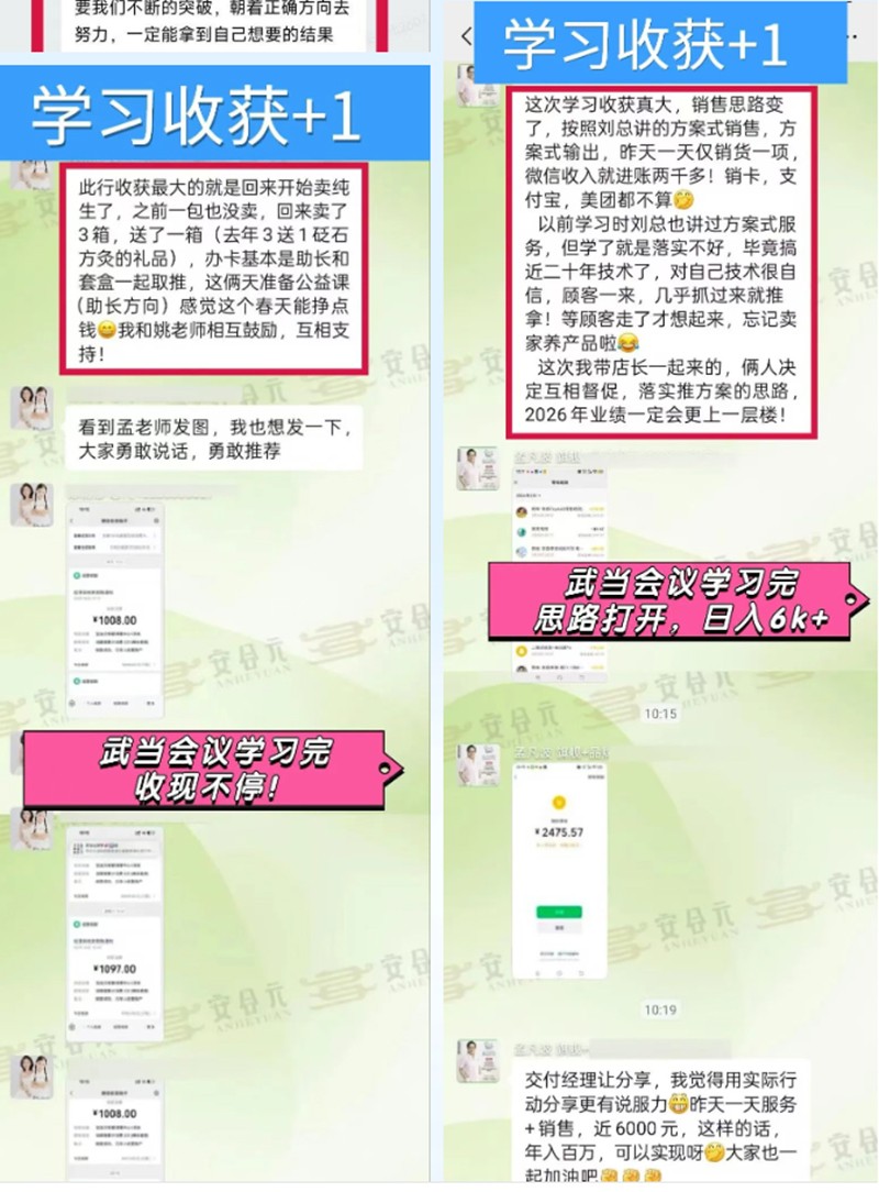 专业与落地双重赋能,包教包会包销无忧。安合元为合作伙伴提供全维度、全方位的赋能支持。一方面通过系统化专业培训夯实基础,另一方面结合门店实际定制专属落地方案,确保每一位伙伴“学完即会、回去就能干”,盈利轻松无忧。