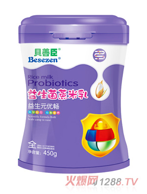 贝善臣益生菌蒸米乳是一款可以用奶瓶冲调吸着吃的营养辅食,是对婴幼儿益生菌蒸米乳的工艺升级。